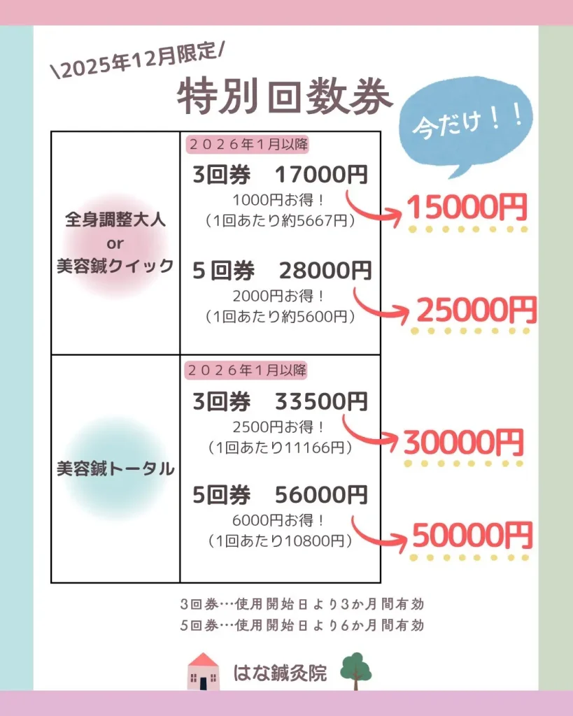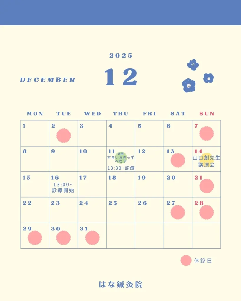日頃より「はな鍼灸院」をご利用いただき、誠にありがとうございます。