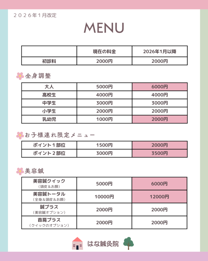 日頃より「はな鍼灸院」をご利用いただき、誠にありがとうございます。